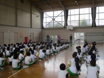 •  交通安全協会の方を講師としてお招きし、1・2年生対象の交通安全教室を行いました。