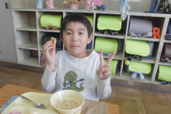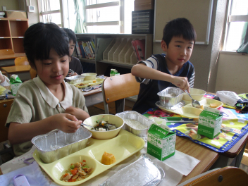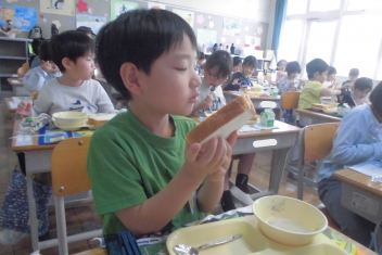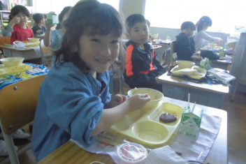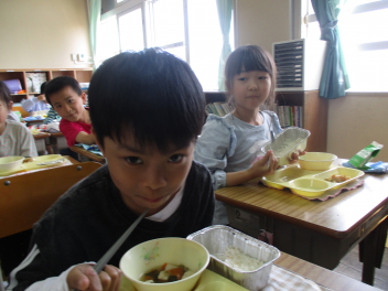 •  今日から、子供たちの大好きな給食がスタートしました。