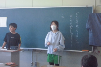 委嘱式では、それぞれの委員長から、所属する委員会の役割を通して、「初生小学校をこのような学校にしたい!」「このような自分たちを目指していきたい!!」といった熱い思いを聴くことができました。どの委員長の話も、とーーーっても立派でした。(さすが、は初生小学校の委員長frown