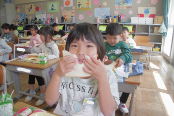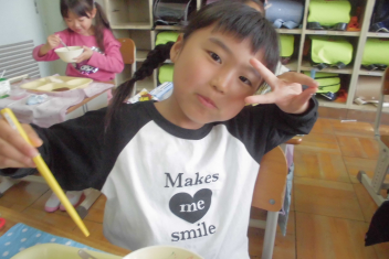 これからもおいしい給食をモリモリ食べようね。frown