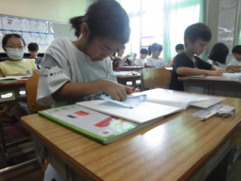 主体的・協働的な学びを通して、学習を深めていきます。さすが、初生小の6年生