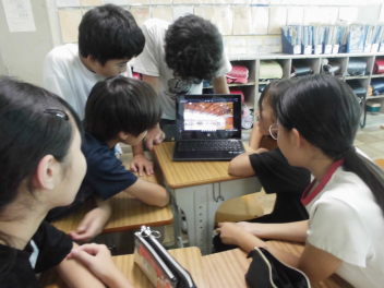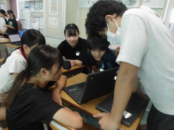 この日は、チームの仲間とゲームの様子を撮影した動画を見ながら、チームの強みと弱みを分析し、強みを活かしたり弱みを克服したりするためには、どのような練習や作成を取り入れていけばよいかについて話し合っていました。