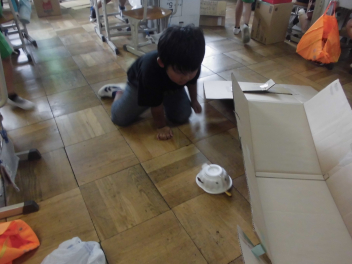 子供たちは「おもちゃをもっともっとよくしていくためには、どうすればいいのかな?」といった問いを持ち、おもちゃの出来栄えを確かめ合ったり、友達と知恵を出し合ったりしながら、おもちゃ作りに取り組んでいました。