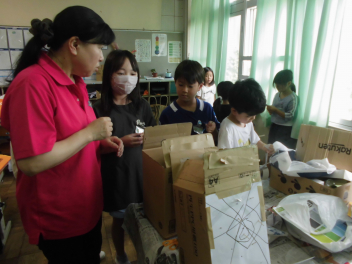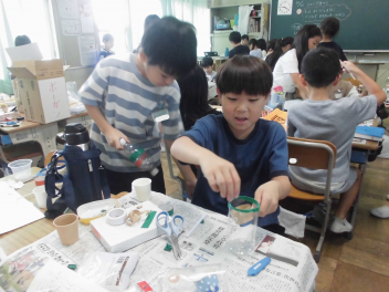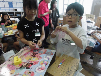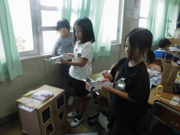 •  2年生の生活科の学習では、おもちゃ作りに挑戦しています。