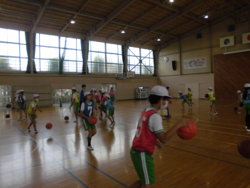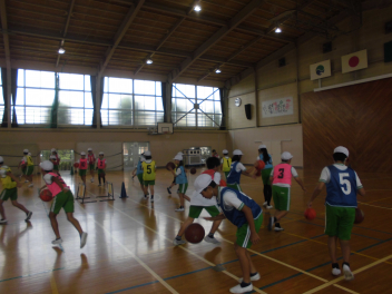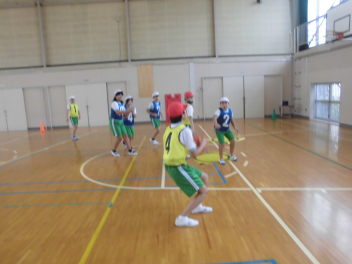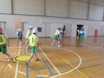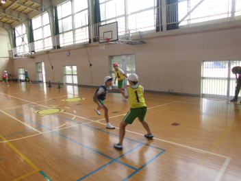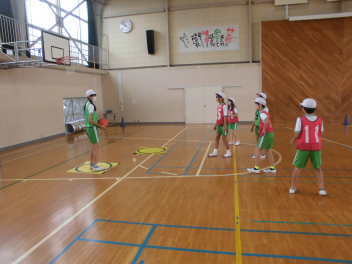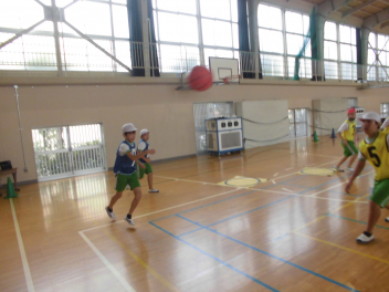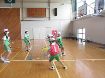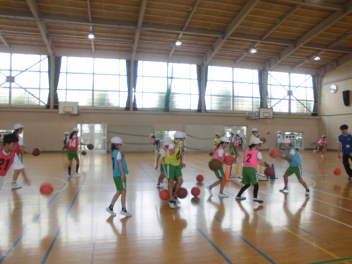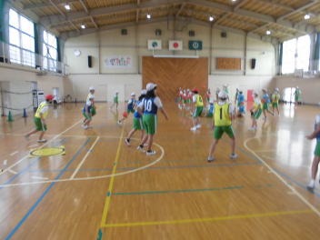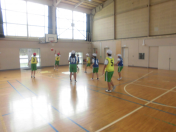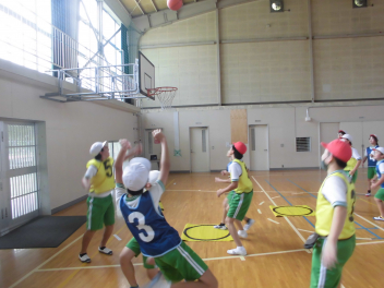 •  6年生は、体育科の学習で「シートバスケットボール」に挑戦しています。