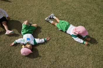 おもいっきり園庭で遊び、こどもたちも満足。