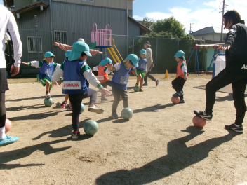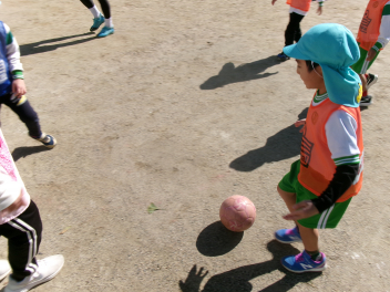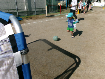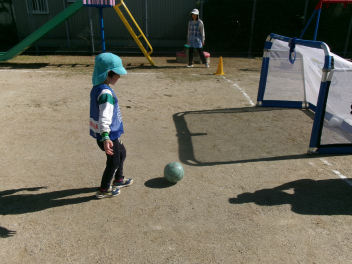 次は、足を使います。サッカーボールはやっぱり足が一番の友達です。