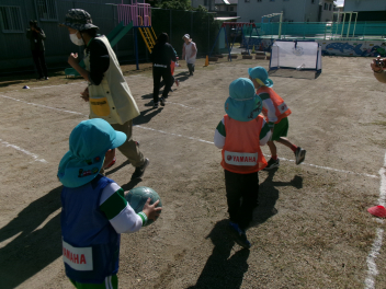 そら組がコーチに教えてもらいながら、サッカーを楽しみましたsad
