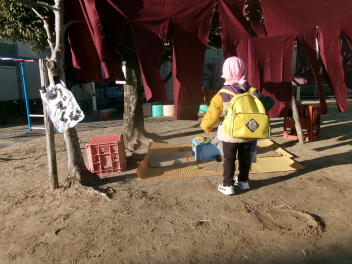 お母さん、お父さんと一緒に体を動かしたりして遊びます。