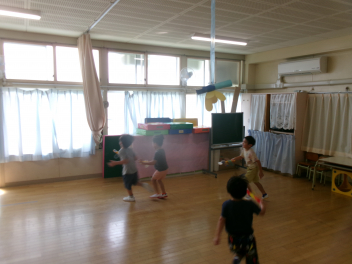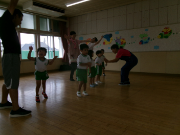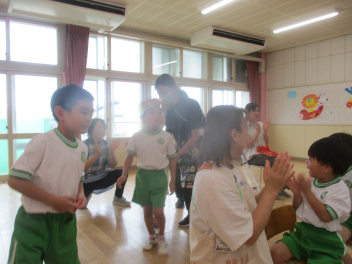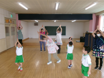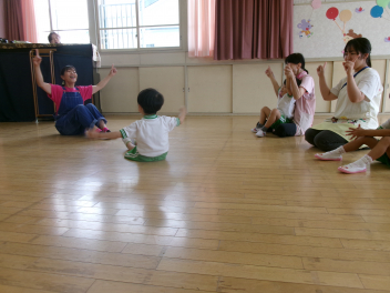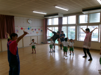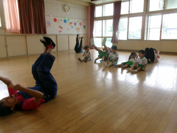 音楽に合わせて先生たちと一緒に、いろいろな技に挑戦しました。