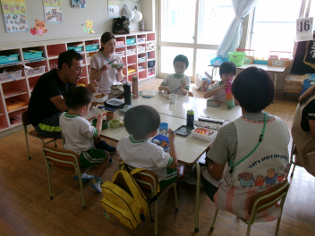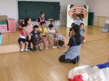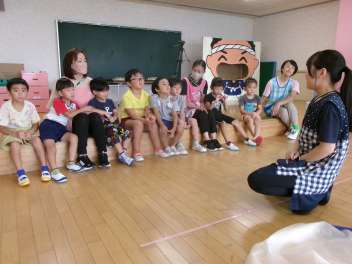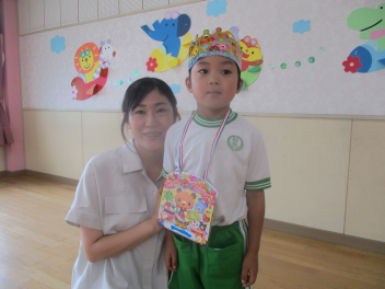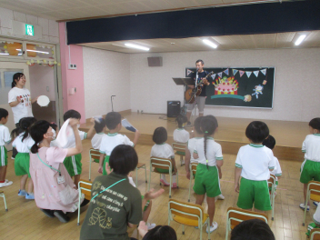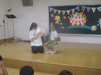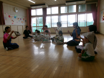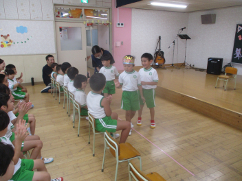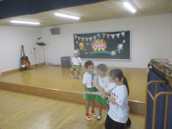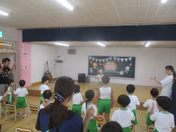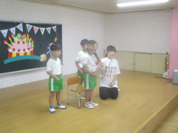 初生幼稚園のこどもたち、先生たちみんなで9月のお誕生日のお友達をお祝いしました