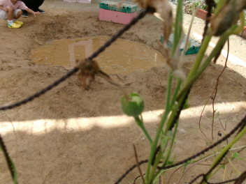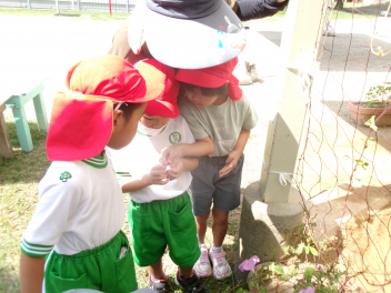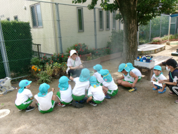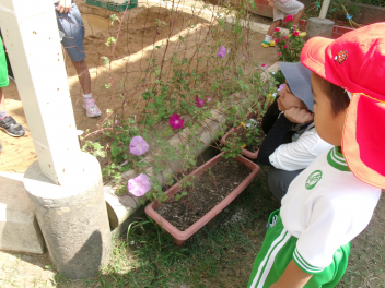 アサガオの様子を見に行ったこどもたちが気付きました。