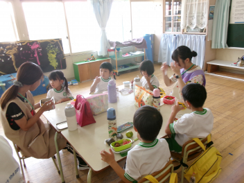 2学期からお弁当の時間は「なかようぐるうぷ」で過ごしています。