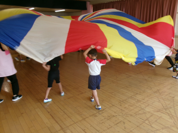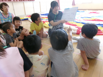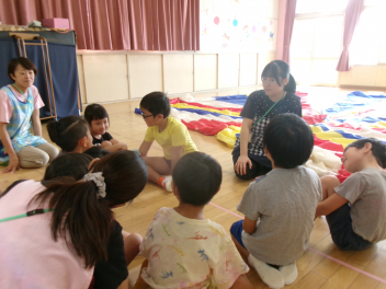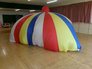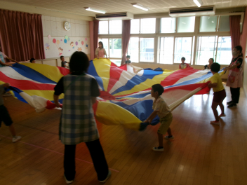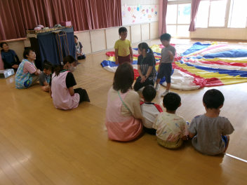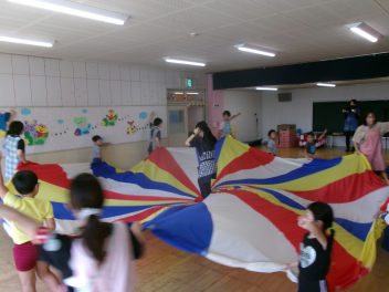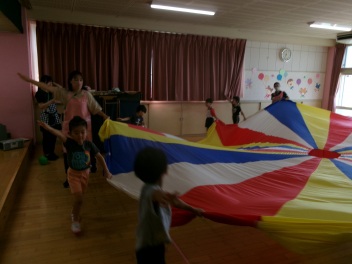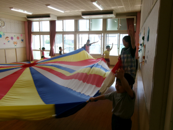 • そら組、今日は遊戯室でパラバルーン遊び。