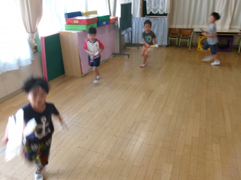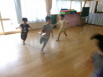 うさぎ組の「うんどうかいまつり」は職員室で見ていた先生たちから大きな拍手!