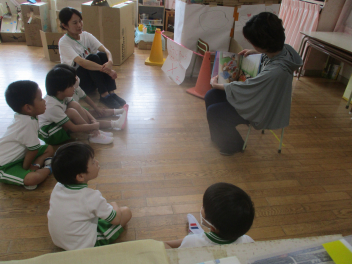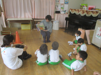 うさぎ組は幼稚園で初めての読み聞かせです。