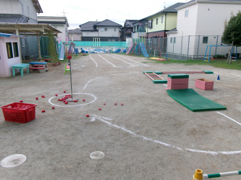 先生たちは、こんな日にはと、朝から遊びの環境を準備しました。