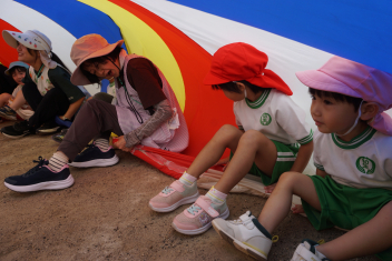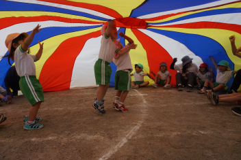 よし、みんなでパラバルーンで遊ぼう!