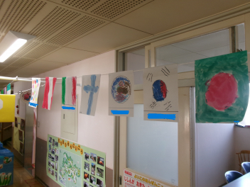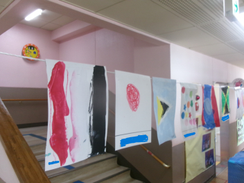 初生幼稚園にはこどもたちの芸術作品がいたるところにあります。