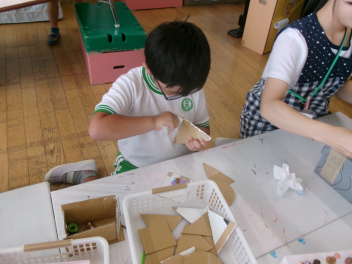 こどもたち一人一人のイメージが広がるようにアイディアを出したり、