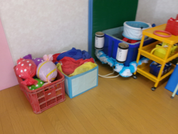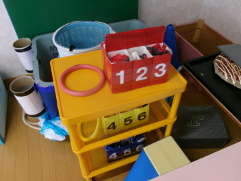 遊戯室には運動会で使用する様々道具が準備されています。
