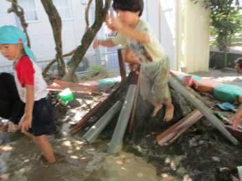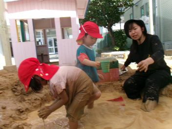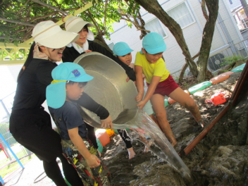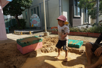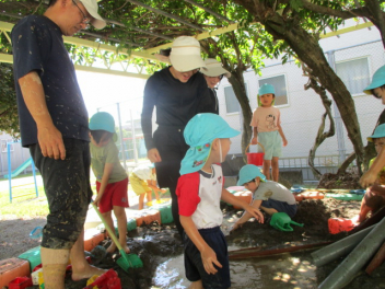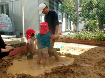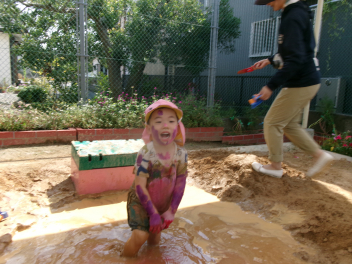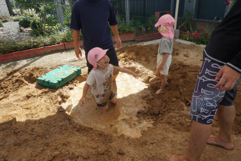 こどもとともに、土、砂、水の感触を存分に楽しみました。
