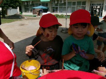 だんだん遊びがダイナミックになり、ボディーペインティングが始まりましたwink