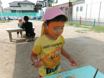 絵の具遊びを、全身を使って楽しんでいました。