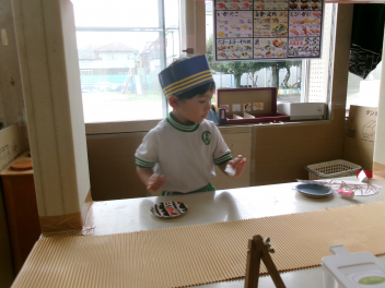 片付けも遊びだねfrown