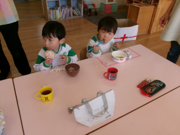 こどもたちが買い物に出掛け、先生たちが調理しました。