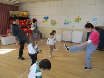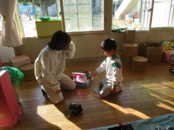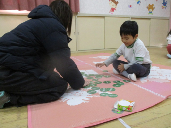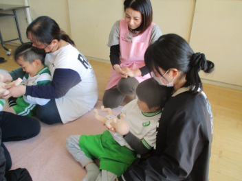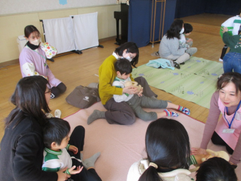 こどもたちは、お母さんと一緒に遊べることに大喜びです。