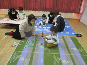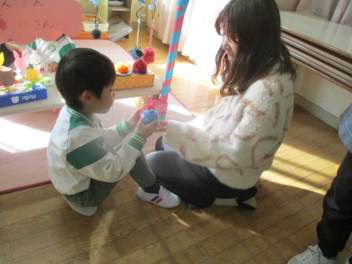 もうすぐ年長となるこどもたち。優しく頼りになるお兄さん、お姉さんになってきていますね