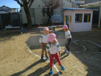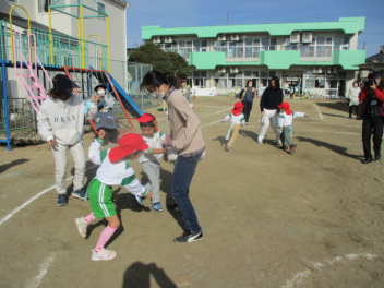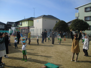 今日もみんなで元気よく園庭で体を動かして遊ぼうsad
