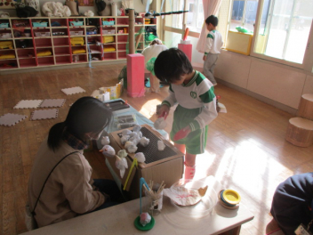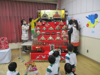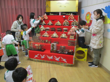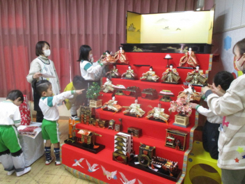 • 立春が過ぎ、幼稚園ではひな祭りの準備をしていきます。