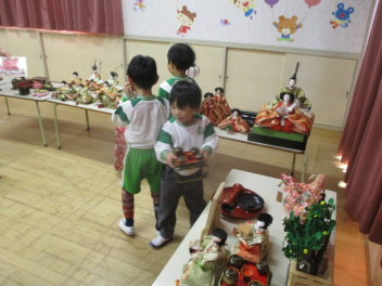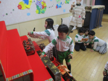 そら組にひな人形を飾るお手伝いをしてもらいます。