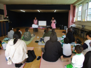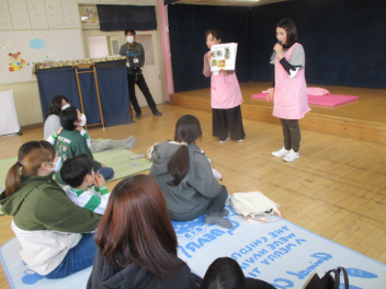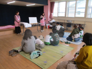 助産師から命についてのお話を親子で聞きました。