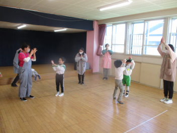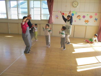音楽に合わせて楽しく体を動かします心も体もはずみますsad