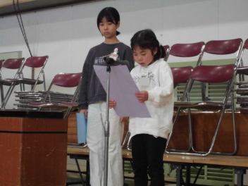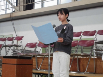 はじめに、今年度を振り返って児童代表の2名が発表をしました。