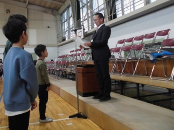 次に、修了証をひかり・のぞみ学級と各学年の代表者が、校長先生から受け取りました。