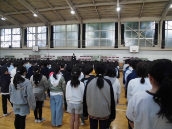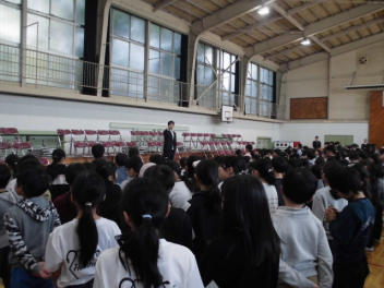 修了式の後、明日から始まる「春休み」の過ごし方について、生徒指導の先生からお話がありました。