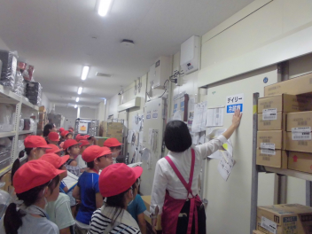店長さんがバックヤードの中を見学させてくださいました。子供たちは、普段は見ることのできない場所に目を輝かせていました。店内は、車いすの方にも優しい造りになっていたり、商品の並べ方1つとってもお客さんが買いやすいように工夫されていたりすることを知り、驚くことばかりの3年生でした。また1つ「!よろこびをつくりだす」(曳馬っ子4つのめあて)ことができました。