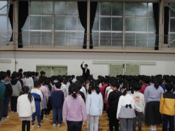 体育館に集まった子供たちは、2学期の終業式と同じように、とても落ち着いた態度で開式の時を待っていました。体育館は、ほどよい緊張感に満ちて、凛とした空気が漂っていました。