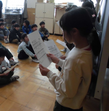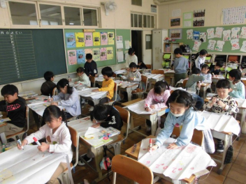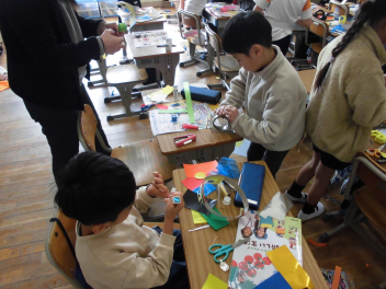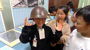 「太平洋戦争と浜松」の授業では、2学期に国語科で学習した「ちいちゃんのかげおくり」の物語の世界をより詳しく学ぶことができました。「戦争とは何か」や「浜松市が受けたの被害」についてお話を聞き、貴重な写真資料を見せていただきました。また、当時使用されていた爆弾の模型や本物の焼夷弾、ヘルメットなどを見たり触れたりさせていただきました。実際に戦争を経験された方には及びませんが、「ちいちゃん」が生きた時代の過酷さについて感じることができました。