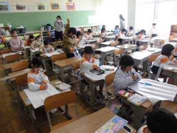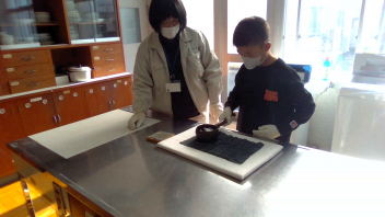 普段は、自分たちが足を運ばないといけない博物館ですが、今日は博物館が曳馬小に来てくれました。