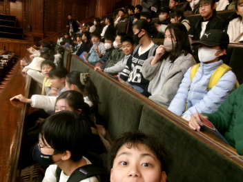 国会議事堂議では、日本の議会政治の基礎を築いた伊藤博文・板垣退助・大隈重信の銅像が立つ中央広間や、天皇陛下の御休所を実際に見学することができました。