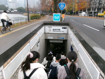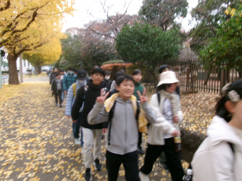 東京駅をバックにクラス写真を撮影した後は、最初の活動「歴史散策」をしました。