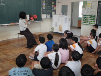 •  毎週、火曜日の朝には、ボランティアの方たちによる「読み聞かせ」があります。