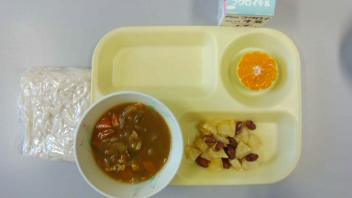 今日の給食に登場しているみかんの品種は、「温州(うんしゅう)みかん」といいます。
