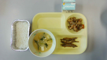 献立表を見ながら、この日の給食で「やら米か(米飯)」「浜松茶」「三方原ばれいしょ」「大根」「葉ねぎ」の5つの食材で浜松産が使われていることを確認しました。