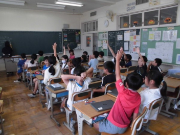 今は、「運動会前」ということもあり、「演技練習」や「作戦会議」などをしている子たちが一番多いです。この日は、1、4、6年生が、演技の練習に一生懸命取り組んでいました。5年生は、委員会活動の仕事やよろこび学習のことを進めていた子もいました。